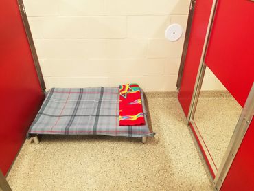 All of our canine guests have a sun-lit, private run complete with hammock (Kuranda) pet bed on request. Warm, clean linens are provided for everyone and the floor is even heated! There are three sizes of rooms (runs) available for you to choose from: Cozy (20 sq. ft), Medium (25-28 sq. ft), and Spacious (30 sq.ft). Although we set maximum weight limits (so a 150 lb Mastiff can’t be placed in our smallest run), there is no minimum weight limit. If your 5 pound pooch is used to having a lot of room to roam, you are welcome to request our largest room! We have several adjoining dog rooms for your pets if they enjoy each other’s company. These rooms have access to each other through their very own, private door so your pooches can visit and play together and get double the space!